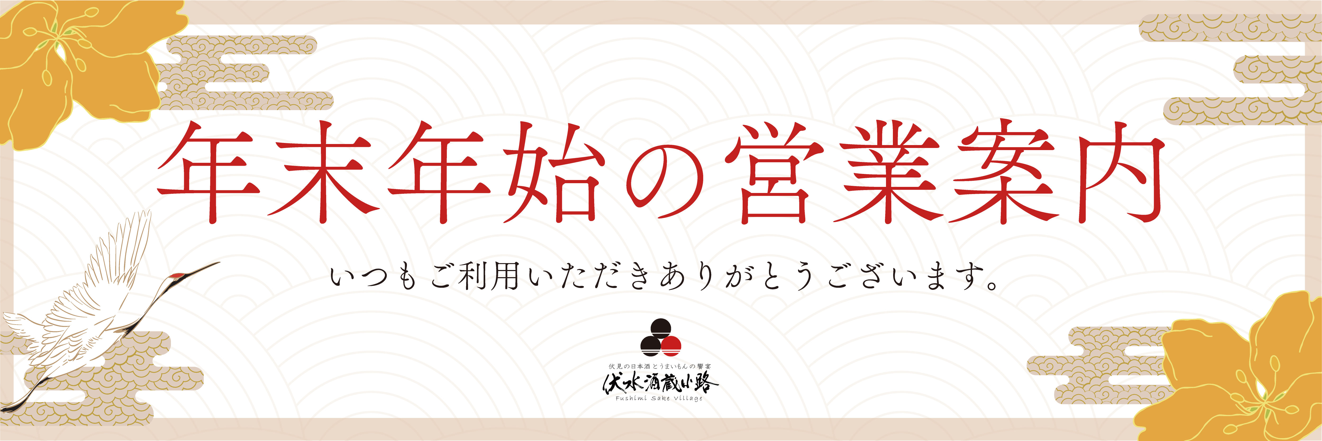 【年末年始のお知らせ】 伏水酒蔵小路をご利用いただき誠にありがとうございます。 年末年始の営業は下記の通りです。 12/30 通常営業(11:00-22:00) 12:31 時短営業(11:00-19:00) 1/1 通…