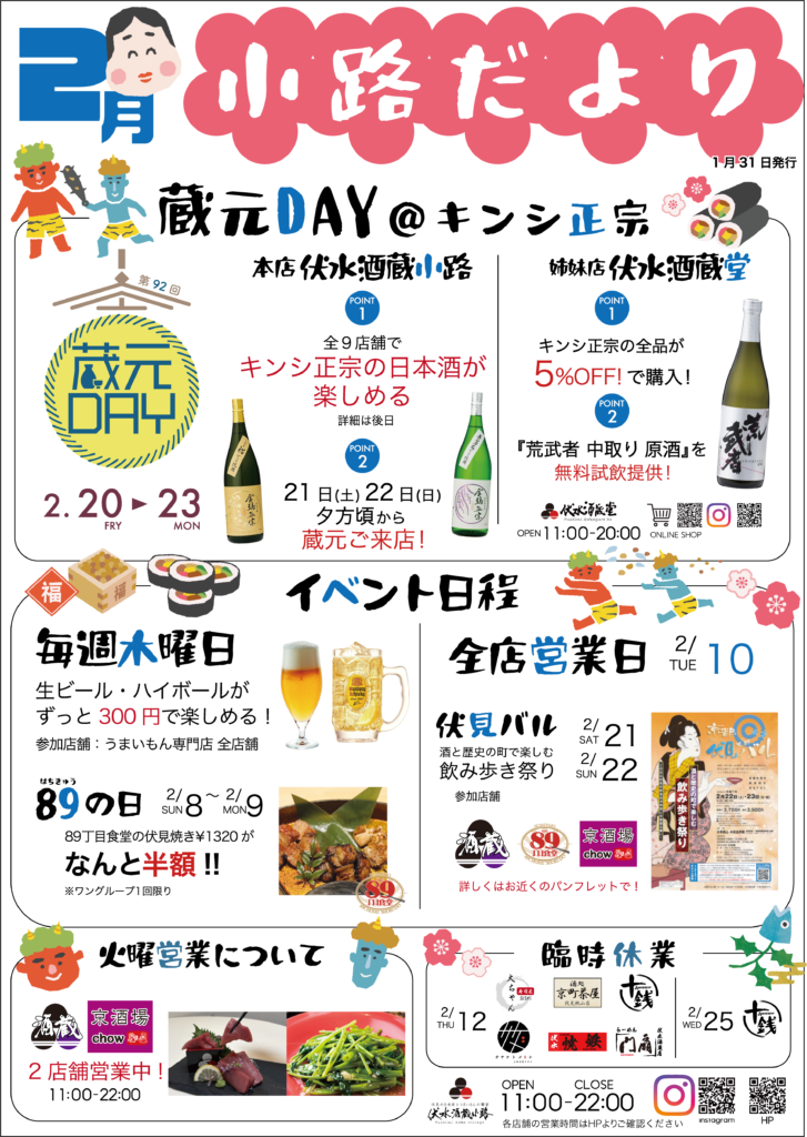 7/8(金)から10(日)は蔵元DAY!今回の酒蔵は「宝酒造」です。 今回のイベントを機に、宝酒造の白壁蔵(兵庫県:灘)で造られたお酒が酒蔵小路で解禁されます!伏見のお酒と灘のお酒の飲み比べを是非どうぞ。 京都・伏見では…