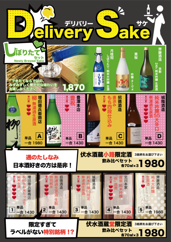 …伏水酒蔵小路の酒蔵出店場所で出前注文できるメニューです。
