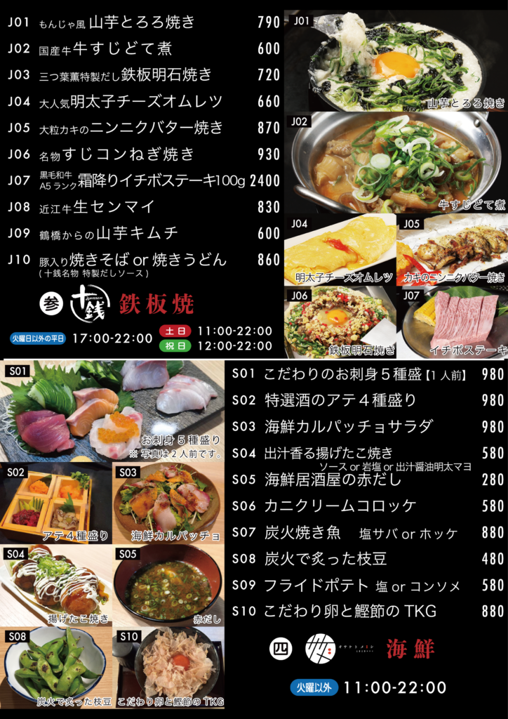 座ったお席のお店のオリジナルメニューとの組み合わせは∞!